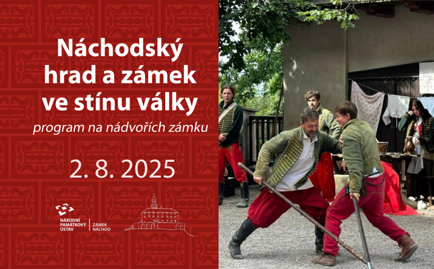 Náchodský hrad a zámek ve stínu války. Do dějin i podoby našeho zámku, ale i do životů jeho majitelů se nesmazatelně vepsalo mnoho válečných konfliktů. Byly to třeba už války husitské, ale taky válka třicetiletá nebo prusko-rakouská. A protože na tyto události nesmíme zapomínat, připravili jsme pro vás den, během kterého se můžete těšit na šermířská vystoupení, ukázky dobových zbraní nebo na další doprovodný program spojený s vojenstvím.